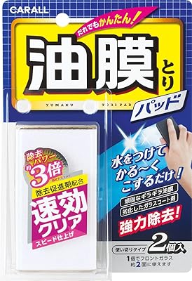 油膜取りは水に濡らして白い面をガラスに擦ると除去促進剤が出てきます